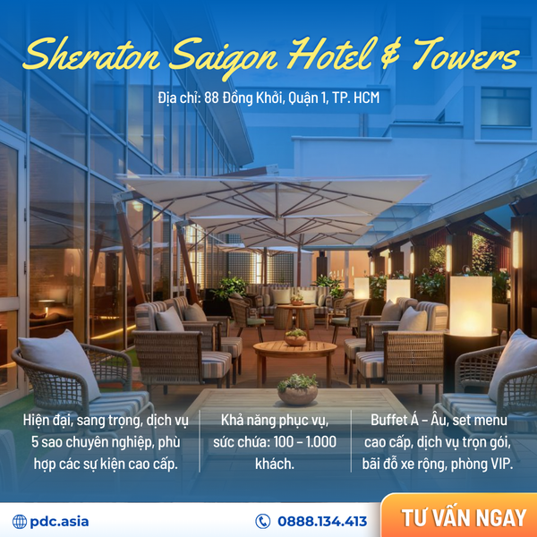 Sheraton Saigon Hotel & Towers chính là địa điểm thích hợp để tổ chức nhiều hình thức sự kiện, khám phá ẩm thực trong nước và quốc tế đẳng cấp, tận hưởng các dịch vụ chuyên nghiệp và trải nghiệm những nét đặc sắc của văn hóa địa phương ngay trung tâm đô thị sôi động bậc nhất Việt Nam.