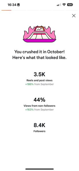 Tăng trưởng Lượt Xem Reels/Post ấn tượng: Tăng 186% trong tháng 10, đạt 3.5K views