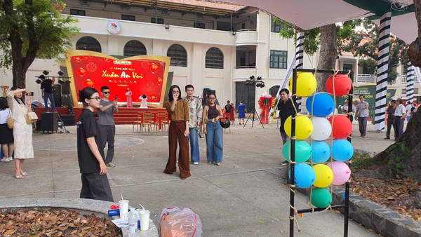 From the early morning of January 19, the festive atmosphere filled the entire schoolyard. Golden bundles of straw, traditional banh chung wrapping booths, and calligraphy corners recreated the image of a traditional Vietnamese village right in the heart of the bustling city.